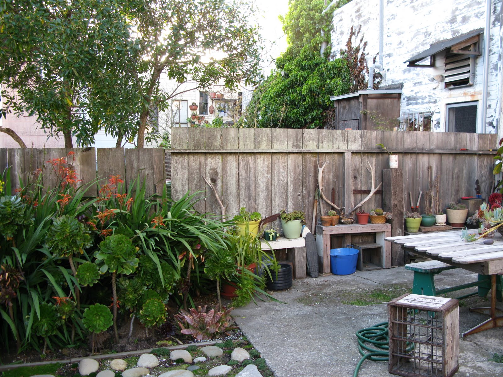 I want everything! There's also a sweet back patio, where succulents live happily outdoors and in a greenhouse.